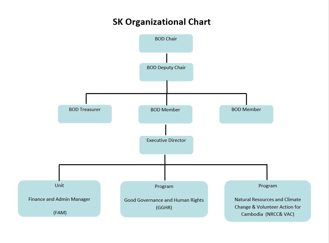 All staff members working for SK are under the direct management of ED. Staff recruitment is based on non-discrimination and adheres to By-Laws and Gender Policy of SK. All staff shall be responsible and accountable for their supervisors and strict to their respective job description.